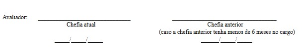 2.8.1 Caso a chefia atual tenha menos de 6 meses no cargo, a chefia anterior deverá participar da avaliação e também deverá assinar a avaliação.