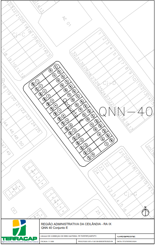 "NOTA: Fica alterado o endereçamento dos lotes situados no Conjunto E, da QNN 40, na Região Administrativa de Ceilândia - RA IX, conforme representado no Anexo Único desta Portaria."
